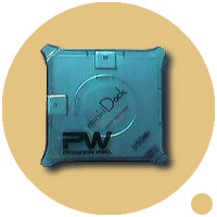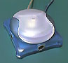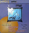 大きさは普通のiDockに比べ、数十分の1ではないでしょうか?同じ物なのにかなり大きさが違います。こちらは、普通のiDockと違ってシリアルポートだけを拡張します。ポートは2ポートあります。見た目は、mini、G3といったような形をしています。または座ぶとんといってもいいかもしれません。(笑) なかなか楽しい形をしています。マウスを置くのにちょうどイイ?です。(右図参照) 裏には、ゴムの足がついていて、たとえば、iMacの天板に置いたとしても滑りにくく、傷がつきにくいようになっています。