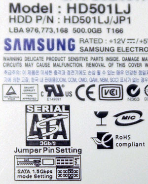 iMac G5に使えるハードディスクですが、SAMSUNGのHD501LJをジャンパーピンの設定で1.5GpbsモードにすればOKでした。